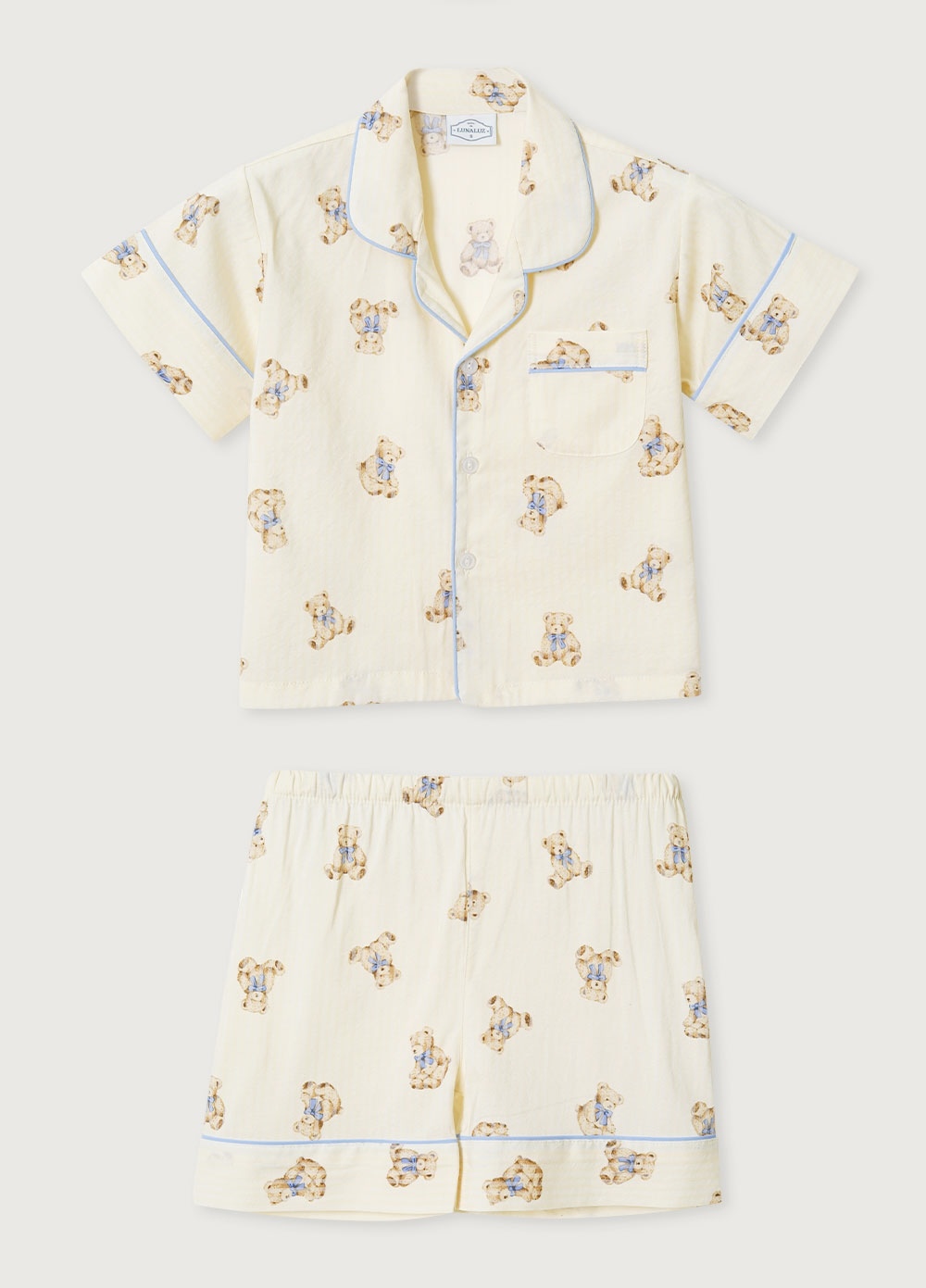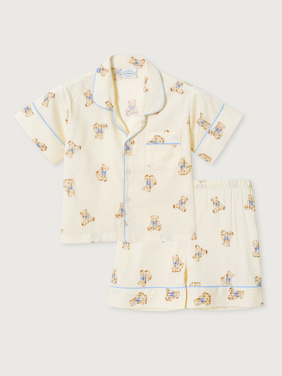 👶🏻👦🏻小朋友的睡衣_【藍領結泰迪熊短袖睡衣套裝|奶油黃】