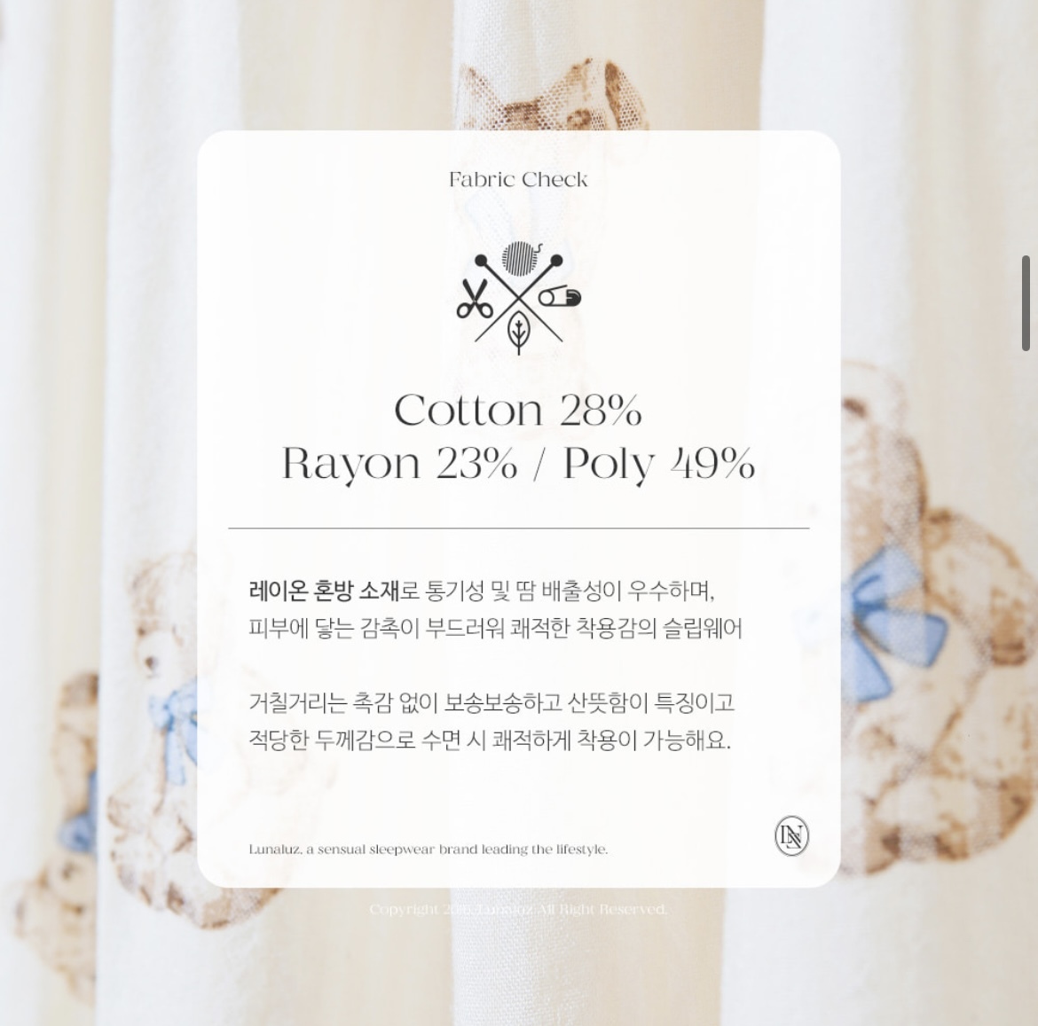 •睡衣無穿著時請保持良好通風性,防止受潮損壞。