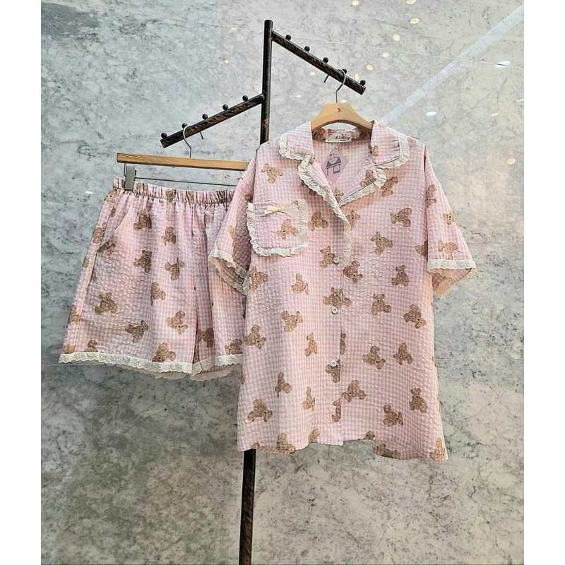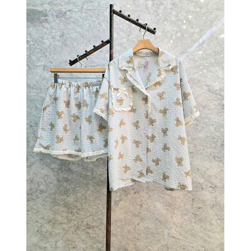韓國☆l’m bling☆熊熊蕾絲設計 (粉/藍 F均碼)睡衣套裝